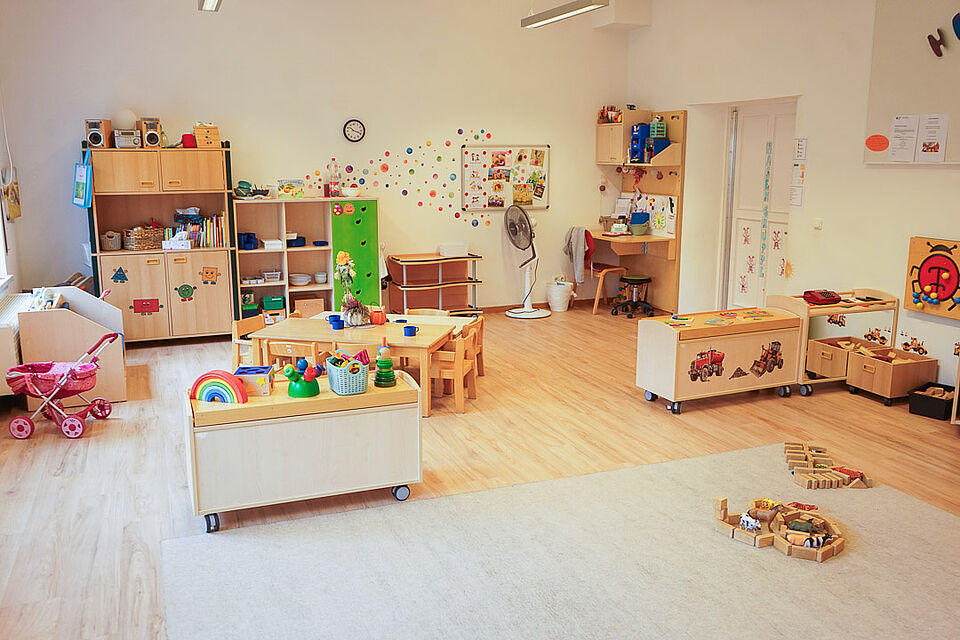 Seit 2005 bieten wir in unserer Kita ambulante und häusliche Frühförderung für Kinder mit Entwicklungsverzögerungen an. Die Förderung erfolgt durch vertraute Fachkräfte im bekannten Umfeld und in enger Zusammenarbeit mit Therapeuten sowie der jeweiligen Gruppenerzieherin. Förderpläne werden regelmäßig erstellt und angepasst, spezielle Materialien unterstützen die Arbeit.